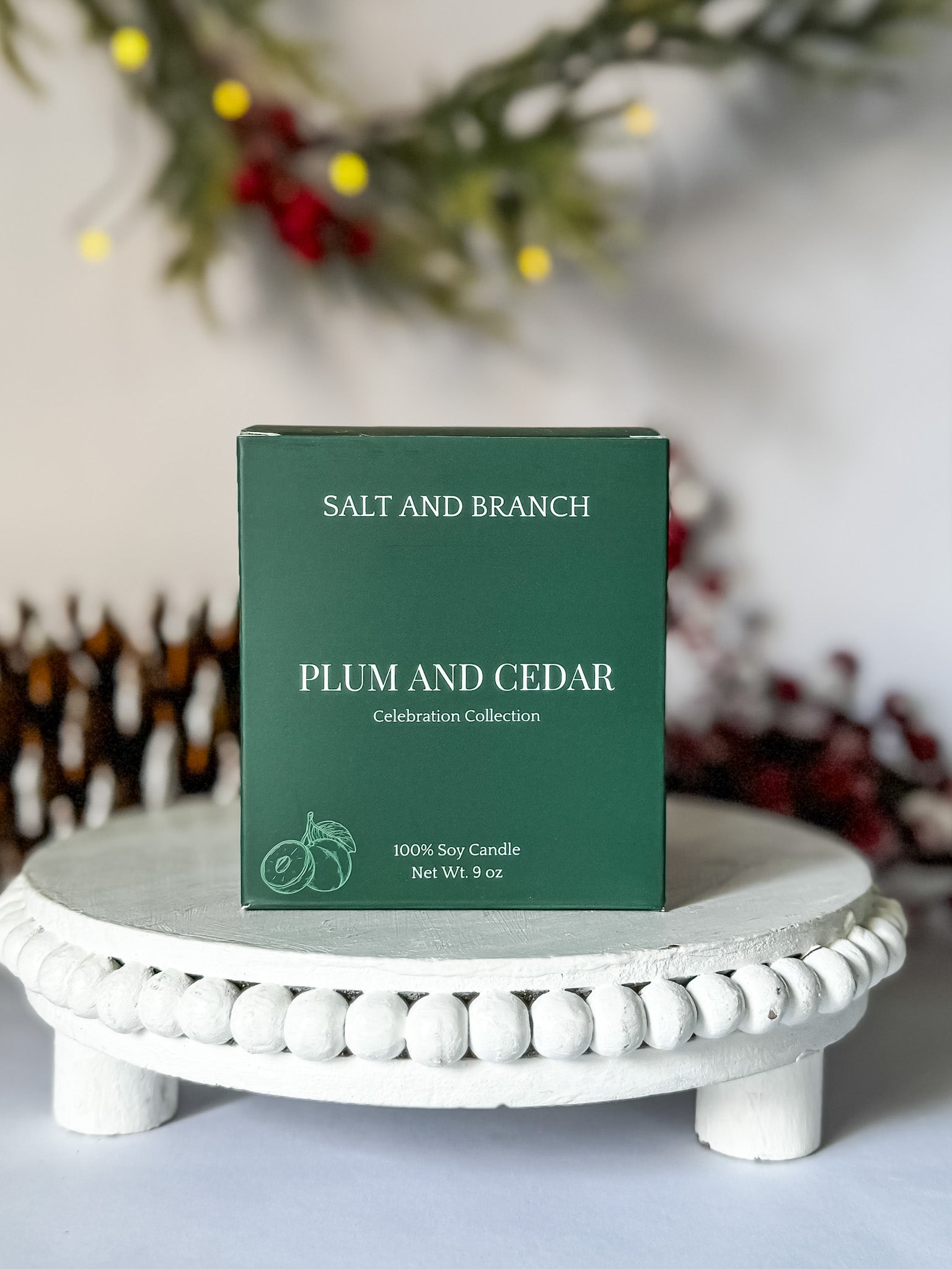 Immerse yourself in the enchanting scents of ripe plum, rich cedar, warm sandalwood, spicy clove and fresh pine with our Plum and Cedar Soy Candle. Whether you are celebrating a special occasion or looking to create a cozy atmosphere, Plum and Cedar is the perfect choice. Available in a 9 oz glass tumbler with gift box.